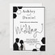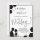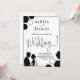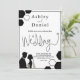 Este elegante convite de casamento preto e branco é perfeito para um casamento moderno. O simples design apresenta uma caligrafia preta elegante, um quadro preto chic e uma ilustração noiva e noiva sobre um fundo branco limpo. O cartão de convite inclui os detalhes do casamento no verso, em vez de pagar um cartão separado.