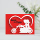 Notícia de Casamento de Casal Silhueta Andando de Moto Salvar a Data em Vermelho, Branco e Preto.