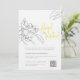 Um simples convite para casamento, desenhado moderno, em cinzas brancas, com um pop de amarelo-limão Perfeito para um simples casamento moderno de flores cítricas. Personalize este design florescente com seus próprios nomes e detalhes de casamento, código QR para respostas ou registro de presentes e sua foto de casais no verso. Outros itens correspondentes disponíveis. Arte botânica floral de Sarah Trett para www.mylittleedenweddings.com