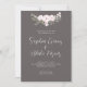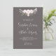 Apresentamos nosso convite de casamento elegante e refinado, perfeito para casais que querem mostrar um toque de sofisticação subestimada em suas estórias de casamento. Este convite apresenta uma sombra sutil e sutil de cinzas com um delicado buquê de flores rosa pálidas e verde claro no topo, criando uma design graciosa e romântica. O texto do convite é impresso numa cor de creme suave, acrescentando um toque de simplicidade e elegância à aparência geral. O recurso de destaque deste convite é a fonte de script elaborada branca usada para os nomes dos casais, adicionando um toque de refinamento e graça ao design. Este convite é perfeito para casais que querem transmitir um senso de sofisticação e romance em suas celebrações de casamento enquanto mantêm as coisas simples e subestimadas. É versátil o suficiente para trabalhar com uma variedade de temas e estilos de casamento, desde o vintage até o moderno. Além disso, o material de alta qualidade e a impressão garantem que seus convidados ficarão impressionados a partir do momento em que receberem o convite pelo correio. No geral, o nosso simples convite para o casamento em cinzas é uma escolha bela e eterno que dará o tom para um dia de casamento romântico e inesquecível.