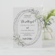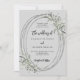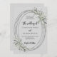 Um fundo colorido de cinza neblina. Decorado com verde e quadro oval. Personalize e adicione seus nomes e detalhes.