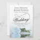 Este belo convite para o casamento apresenta uma bela fotografia de um solteiro de cor azul pálida ou azul empoeirado que se encontra ao seu lado, refletindo numa piscina de água com ondas e ondulações. O design apresenta um roteiro de caligrafia rico com um fazer de cauda longa e encaracolada, moderno e clássico. Uma maneira elegante, sofisticada e chique de convidar seus amigos e família para compartilhar seu dia especial. A parte traseira do cartão tem um código QR para o seu site de casamento e uma breve nota instruindo as pessoas a visitar o site para obter detalhes e RSVP.
