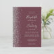 A margem esquerda deste elegante convite de casamento moderno apresenta um design de cintilação de prata. O texto personalizável combina a escrita manual de cinzas prateadas, fontes copperplate e itálico em um fundo vermelho escuro e vermelho. O verso fornece espaço para detalhes do casamento em um fundo sólido de burgundy, junto com um código QR que os convidados podem digitalizar para visitar seu site e RSVP, o que economiza o custo de imprimir e enviar cartões RSVP separados.