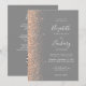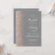 A margem esquerda deste elegante convite de casamento moderno apresenta um design de brilho de pêssego. O texto personalizável combina manuscrito branco, fontes em copperplate e itálico em um fundo de cinza. O verso fornece espaço para detalhes do casamento em um fundo de cinza sólida, juntamente com um código QR que os convidados podem digitalizar para visitar seu site e RSVP, o que economiza o custo de imprimir e enviar cartões RSVP separados.