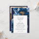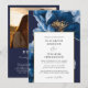 Este elegante convite de casamento floral azul e dourado pode ser personalizado com suas informações em tipografia moderna e seus detalhes de casamento no sentido inverso, juntamente com seu website de casamento Código QR e foto especial. Projetado por Thisnotme©