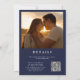 Convite Casamento de Código QR de Foto Floral Dourada Azul
