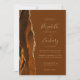 A borda esquerda deste elegante convite de casamento moderno apresenta uma cor de água laranja queimada, aparada com falsa brilho dourado. O texto personalizável combina manuscritos dourados, copperplate e fontes itálicas em um fundo marrom noz. Adicione sua foto favorita ao verso, juntamente com texto adicional e um código QR para enviar convidados para o site do seu casamento.