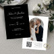 Este maravilhoso e eterno Convite para Casamento de Código QR de Foto Negra é o epítome do design moderno minimalista, com um elegante esquema de cor negra e um layout simples e limpo que exude elegância. A bela tipografia da escrita cria um olhar glamouroso que nunca sairá do estilo. A foto no verso está enquadrada em um delicado arco de casamento, fazer este convite realmente único. A adição de um código QR adiciona um toque de tecnologia e conveniência, fazer fácil para os convidados para RSVP e obter mais informações sobre o casamento. O fundo negro proporciona um contraste ousado e marcante e cria uma atmosfera de um casamento sofisticado. Com este convite, os casais podem dar o tom para o seu grande dia com um design de tendências e de olhos que certamente impressiona os seus convidados.
