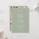 Comemore seu casamento em estilo com este convite de casamento verde moderno, com espaço para sua foto favorita e um código QR integrado. O layout minimalista combina tons suaves com tipografia editorial limpa, criando um eterno, mas contemporâneo. O código QR facilita para os convidados o RSVP ou o acesso instantâneo ao seu site de casamento. Perfeito para casais que buscam um convite novo e moderno que combina elegância com funcionalidade.
