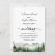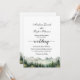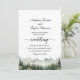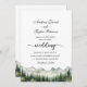 Um convite elegante para o casamento com montanhas de aquarelas e pinheiros que você pode personalizar com seus detalhes.