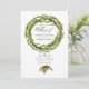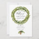 Convites de cones de pinheiro em aquarela para casamento de inverno em tons de verde e branco na moda. O código QR no verso direciona para o site do seu casamento, onde as pessoas podem saber mais e responder.