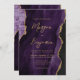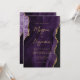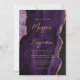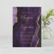 Este elegante convite de casamento apresenta uma imagem de fundo da cor da água púrpura, cortada com uma falso brilho dourado. O texto personalizável combina manuscritos modernos, em cores douradas, e fontes itálicas. O verso fornece espaço para detalhes do casamento em um fundo de agata roxo correspondente, juntamente com um código QR que os convidados podem digitalizar para visitar seu site e RSVP, o que economiza o custo de imprimir e enviar cartões RSVP separados.