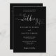Este elegante convite de casamento a preto e branco, com caligrafia de escrita cardíaca, pode ser personalizado com as suas informações em tipografia quic, com os detalhes do seu website de casamento e o seu código QR no verso. Projetado por Thisnotme©
