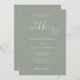 Este elegante convite de casamento verde de sábio com caligrafia cardíaca pode ser personalizado com suas informações em tipografia quic com seus detalhes no site do casamento e seu código QR no verso. Projetado por Thisnotme©