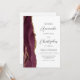 A borda esquerda deste elegante convite de casamento moderno apresenta uma cor vermelha e borrifada, com uma falsa brilha de ouro. O texto personalizável combina o script de cinza de carvão e as fontes sans serif em um fundo branco. O verso oferece espaço para detalhes do casamento, juntamente com um código QR que os convidados podem digitalizar para visitar seu site e RSVP, o que economiza o custo de impressão e envio de cartões RSVP separados.