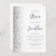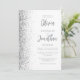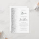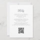 A borda esquerda deste elegante convite de casamento moderno apresenta uma borda falsa de prata. O texto personalizável combina o script de cinza e as fontes sans serif em um fundo branco. O verso fornece espaço para detalhes do casamento em um fundo branco sólido, junto com um código QR que os convidados podem digitalizar para visitar seu site e RSVP, o que economiza o custo de imprimir e enviar cartões RSVP separados.