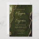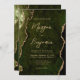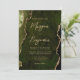Este elegante convite para o casamento apresenta uma imagem de fundo da aquarela verde-oliva, agada, aparada com falso brilho dourado. O texto personalizável combina manuscrito, protetor e fontes itálicas de cor dourada. O verso fornece espaço para detalhes de casamento em um plano de fundo de agata verde correspondente, junto com um código QR que os convidados podem digitalizar para visitar seu site e RSVP, o que economiza o custo de imprimir e enviar cartões RSVP separados.