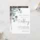 Sobreposição de Foto de Eucalyptus moderna no casamento de Código QR de Script posterior. Disponível digitalmente e impresso. Estilo botânico minimalista elegante, com um roteiro manuscrito para o casamento e o resto do texto que você pode personalizar facilmente. Um galho elegante de folhas de eucalipto aquáticas está no canto superior esquerdo. Altere o URL do exemplo no modelo com o URL do seu próprio site para gerar automaticamente o código QR no verso. Substitua a imagem de exemplo no verso por sua.