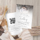 Casamento de Código QR do Script Moderno de Sobreposição de Foto. Adicione seu código QR ao seu site de casamento no verso faz com que esta seja uma opção conveniente para seus convidados para RSVP e veja todos os detalhes sem a necessidade de RSVP separado e cartões de detalhes. Seu código QR será gerado automaticamente quando você alterar o URL do exemplo para o seu. Uma tipografia informal em preto para o casamento complementando o resto do texto que você pode facilmente personalizar. Substitua a foto de exemplo pelo seu favorito.