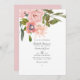Trendy Blush rosas cor-de-rosa e convite floral de ouro rosa com tipografia elegante. Ideal para qualquer tema ou casamento de jardim. O código QR no verso direciona para o seu local de casamento onde o pessoas pode aprender mais e rsvp.