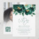 Casamento de Código QR de Sobreposição de Fotos de Flores Emerald e Dourada. Os florais elegantes descem do topo. O Casamento de está em um roteiro de estilo de escrita manual. Personalize facilmente o resto do texto para seus próprios detalhes. Substitua a imagem de exemplo no verso por sua. Adicione seu código QR ao seu site de casamento no verso faz com que esta seja uma opção conveniente para seus convidados para RSVP e veja todos os detalhes sem a necessidade de RSVP separado e cartões de detalhes. Seu código QR será gerado automaticamente para atualizar o código de amostra no design, quando você simplesmente alterar o URL de amostra no modelo com o URL do seu próprio site de casamento.