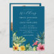 Este elegante convite para casamento de flores tropicais de cor azul-d-água do oceano pode ser personalizado com suas informações em tipografia moderna com seu website de casamento Código QR no verso ao lado de uma foto especial. Projetado por Thisnotme©