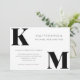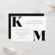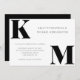 Simples, mas uma declaração: modelo de convite de casamento monograma contemporâneo com design de tipografia ousada e monograma em preto e branco. Mensagem elegante mínima na frente para informar seus convidados sobre o próximo casamento. Código QR personalizado no verso. Todas as cores são personalizáveis para ajustado do seu tema de casamento se você não quiser ir para preto e branco - use a ferramenta design para fazer as mudanças que quiser.