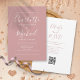 Apresentando nomes de estilo de assinatura, este elegante convite de casamento de rosa poeirento pode ser personalizado com todas as suas informações especiais sobre o dia do casamento na frente, os detalhes do seu website de casamento e o seu código QR no verso. Projetado por Thisnotme©