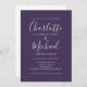 Apresentando nomes de estilo de assinatura, este convite de casamento roxo elegante pode ser personalizado com todas as suas informações especiais sobre o dia do casamento na frente, seus detalhes do site do casamento e seu código QR no verso. Projetado por Thisnotme©