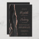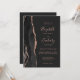 A borda esquerda deste elegante convite de casamento moderno apresenta uma coloração aquosa preta, borda agitada, aparada com falso rosa dourado. O texto personalizável combina letras rosa douradas, letras em copperplate e fontes itálicas em um fundo preto de ardósia. O verso fornece espaço para detalhes do casamento em um fundo de slate sólido, junto com um código QR que os convidados podem digitalizar para visitar seu site e RSVP, o que economiza o custo de imprimir e enviar cartões RSVP separados.