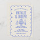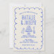 Este convite para o casamento é perfeito para o seu casamento se você está procurando um convite de casamento elegante, único e fácil editável do Código QR. Um convite de modelo de casamento simples e simples e elegante, branco e azul. Que apresenta fundo de creme puro. E a mão azul escreveu os nomes da noiva e do noivo. Com óculos de champanhe ilustrados e desenhados à mão e um bolo de casamento e uma garrafa de champanhe a aparecer. e informações editáveis com código qr personalizável no verso. Barato e é também um e-convite eletrônico digital se você quiser enviá-lo por texto ou email. Todas as informações são personalizáveis clicando no botão personalizar. Então pegue-o e faça-o seu para que você faça você convidar noivos e excitados.