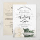 Este belo convite para o casamento apresenta um maravilhoso design floral com caligrafia de lacy e uma rosa branca de marfim empinada de solteiro que se encontra ao seu lado, espelhada numa piscina de água. A parte de trás tem espaço para você listar detalhes e informações junto com um código de QR personalizável para direcionar seus convidados para o site de casamento para informações e/ou para RSVP. O convite foi concebido de modo a funcionar bem com um recorte normal ou de arco. Na moda, elegante, elegante, e glam, este convite vai causar uma impressão duradoura e é uma maneira maravilhosa de convidar os seus convidados a partilhar a vossa alegria no vosso dia especial.