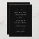 Elegante, convites de casamento tudo em um com seus nomes e informações da cerimônia de casamento na frente, em letras brancas com um fundo preto. Um moderno roteiro de caligrafia completa o olhar desse convite de casamento branco e preto chico. Personalize a parte traseira dos convites para casamento por caligrafia com detalhes de casamento, como informações de recepção, acomodações de hotel, instruções de RSVP e site de casamento. Adicione o link desejado do site de casamento ao modelo de Código QR fornecido para que seus convidados possam facilmente RSVP on-line e exibir informações adicionais sobre o casamento. Este convite de casamento de código QR preto e branco é perfeito para casamentos formais e casuais de qualquer estação.