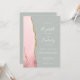 A borda esquerda deste elegante convite de casamento moderno apresenta uma cor-de-água rosa pincelada com borda falsa de ouro. O texto personalizável combina letras de mão, placas de impressão e fontes itálicas em branco sobre um fundo verde-claro. O verso fornece espaço para detalhes do casamento em um fundo verde de sábio sólido, junto com um código QR que os convidados podem digitalizar para visitar seu site e RSVP, o que economiza o custo de imprimir e enviar cartões RSVP separados.