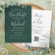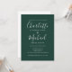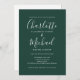 Apresentando nomes de estilo de assinatura, este elegante convite de casamento verde esmeralda pode ser personalizado com todas as suas informações especiais sobre o dia do casamento na frente, seus detalhes do site do casamento e seu código QR no verso. Projetado por Thisnotme©
