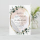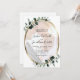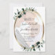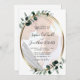 Eucalyptus Photo All in One QR Code RSVP Dourado Invitation... Nosso convite de casamento de foto "RSVP de Código QR" apresenta uma estrutura oval metálica dourada embelezada com folhas de sábio e eucalipto verde esmeralda junto a uma foto da noiva e do noivo em um fundo branco nítido. Sua foto será colocada em uma camada abaixo de uma transparência branca para "esmaecer" as cores de alguma forma, para que o texto no topo seja legível. A parte traseira do convite também exibe o código QR do seu site de casamento, assim como o próprio URL do site, permitindo que seus convidados RSVP online sejam facilmente visualizados e todos os detalhes normalmente enviados em um pacote de casamento. Este convite de casamento ao estilo moderno foi concebido para ser elegante e consciente do orçamento... para não mencionar a poupança de tempo. Todo texto de exemplo pode ser facilmente revisado com suas próprias informações sobre o modelo de personalização.