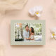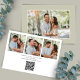 Anuncie seu dia especial em estilo com este elegante cartão de salvamento do casamento, com uma colagem de fotos, um roteiro de caligrafia moderno e um código de QR digitalizável, que liga ao seu site de casamento. Projetado em verde macio com detalhes simples e minimalistas e tipografia refinada, este cartão é perfeito para casais que buscam uma estética limpa e sofisticada. Personalize com suas fotos e data para criar uma primeira impressão de eterno.