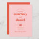 O Convite para casamento Mistura Correspondente de Trendy Laranja Moderno cor rosa apresenta pares modernos em cores ousadas e modernas.