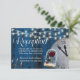 Luzes de Corda Rústicas Cartões de Recepção de Casamento de Conto de Fadas Azul Marinho em Celeiro.