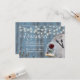Cartões de Recepção de Casamento de Celeiro Azul Empoeirado com Luzes de Corda de Conto de Fadas Rústico.