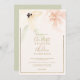 Um pêssego chico e elegante, convite para casamento de cor d'água floral de ouro verde-sábio com flores bonito e bonitas com floral pastel macio com uma borda geométrica de ouro falso-chic. Perfeito para temas de casamento românticos elegantes.