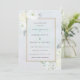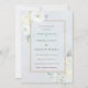 Hídrangas brancas e margaridas criam uma bonito fronteira floral ao redor dos seus detalhes de casamento. O fundo de aquarela azul macio mostra-os perfeitamente. Este elemento faz parte da coleção Casamento Floral de Cor Azul e Branca.