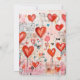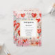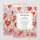 Convite de casamento com um padrão divertido em estilo de mídia mista. Grandes corações vermelhos e várias formas criam um padrão deliciosamente fofo.