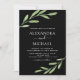 Ramo Rustic Greenery e Folhas Watercolor Spring Wedding Invances with Black Background - inclui uma bela e elegante tipografia com folha botânica e ramificação de árvores modernas para a celebração especial do Dia do Casamento.
