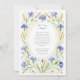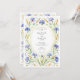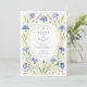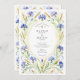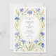 Convide seus convidados para uma celebração cheia de charme natural e elegância artística. Este maravilhoso convite para o casamento apresenta uma borda de aquarela pintada à mão de lindas flores silvestres, mostrando flores vibrantes em tons de azul e lavanda macia, graciosamente entrelaçados com caules rústicos de trigo ouro. A simétrica design inspirada em Art Nouveau mostra videiras verdes e ouros girando que criam uma bela estrutura oval para seus detalhes de casamento. Uma delicada oval de ouro pintada à mão no centro adiciona um toque de luxo refinado. Esta design é perfeita para um campo, rústico-chic, no final do verão, ou no início do outono.
