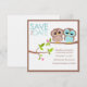 Estes adoráveis anúncios de salve a data apresentam uma ilustração vetorial fofa de um casal de corujas empoleiradas em um galho de árvore. Muitos esquemas de cores disponíveis em nossa loja e mais disponíveis mediante solicitação.