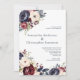 Lindas flores de aquarela de burgundy, marinho e creme com verde e botânico. Adicione suas informações, todos os campos são editáveis. Faça do seu casamento um para se lembrar com este belo convite elegante.