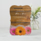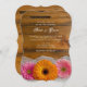 Convide convidados para os vossos futuros núpcias casuais, mas clássicos, com o encantador Convite para Casamento de Daisy Trio Country Barn. Este bonito casamento rústico, personalizado, apresenta uma fina fotografia floral de duas margaridas cor-de-rosa e uma flor de margarida laranja com um véu branco e um fundo de madeira marrom-curada.