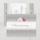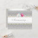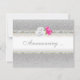 Anúncio de casamento elegante em belo damasco prateado e branco pérola com pérolas drapeadas e 3 rosas, uma rosa branca, 2 rosas cor-de-rosa - Muito elegante - NOTA: Não há rosas verdadeiras, prata, diamantes, pedras preciosas, pérolas, metal precioso ou ouro neste produto de papel. Estes são artisticamente projetados para parecerem reais pelo artista.
