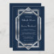 Convite Casamento de Deco de Marinho Azul-Prata Elegante